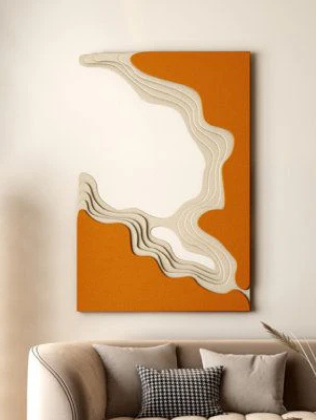 The Amber Flow 3D Wall Sculpture features a striking blend of warm orange tones and layered cream contours, creating a flowing topographic effect that instantly elevates any interior. Crafted as a premium 3D wall sculpture and 3D wall painting, its organic wave-like forms bring movement, depth, and modern artistic character to living rooms, lounges, and contemporary spaces. This elegant wall relief is customizable in size and color, making it easy to tailor to your decor. A perfect choice for those looking to buy 3D wall sculptures that enhance ambience with both texture and visual warmth.